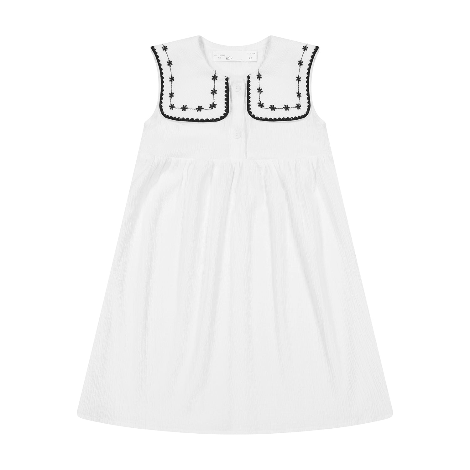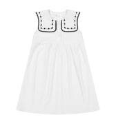 CRINKLE DRESS WITH EMBROIDERED COLLAR