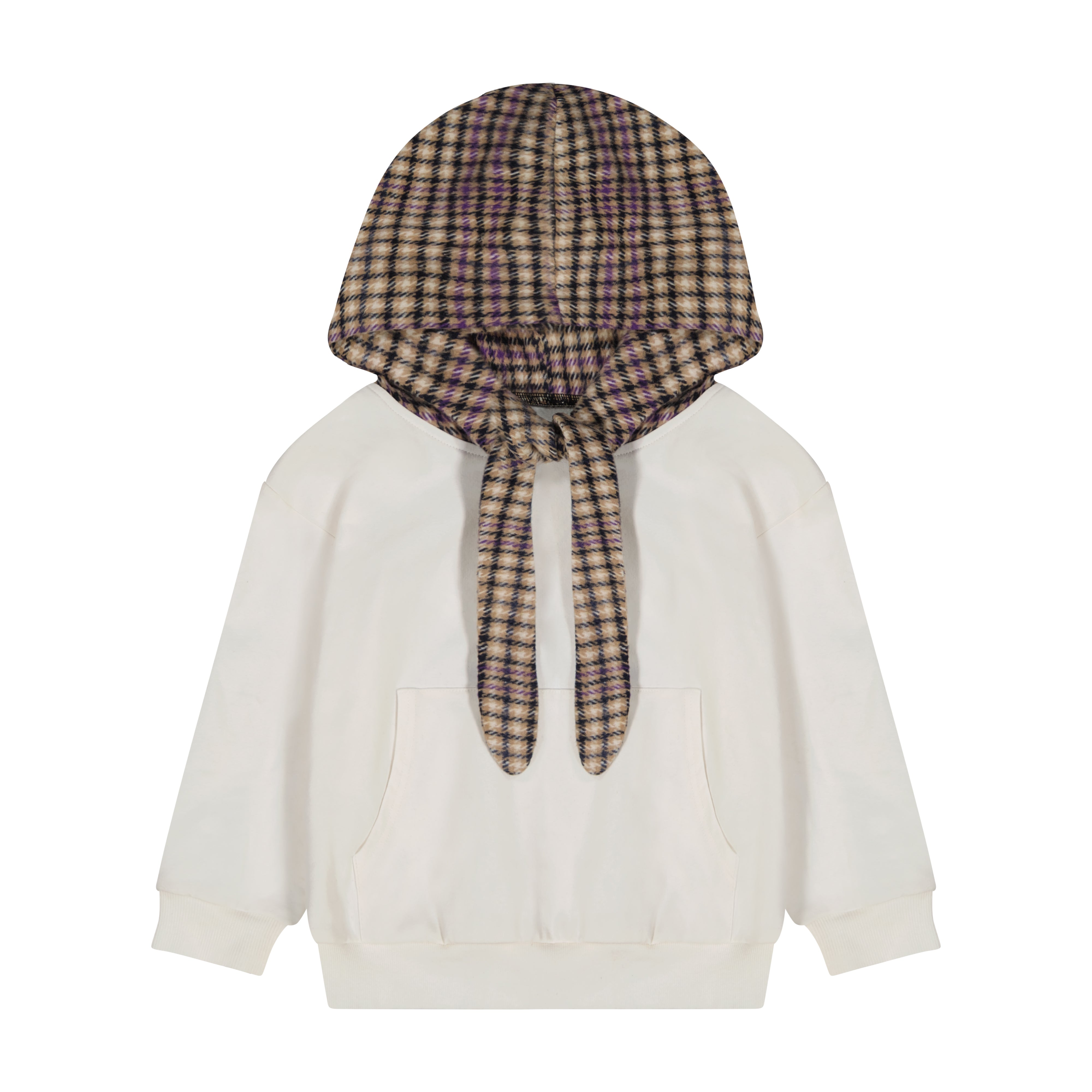 Plaid Tie Hood Sweatshirt