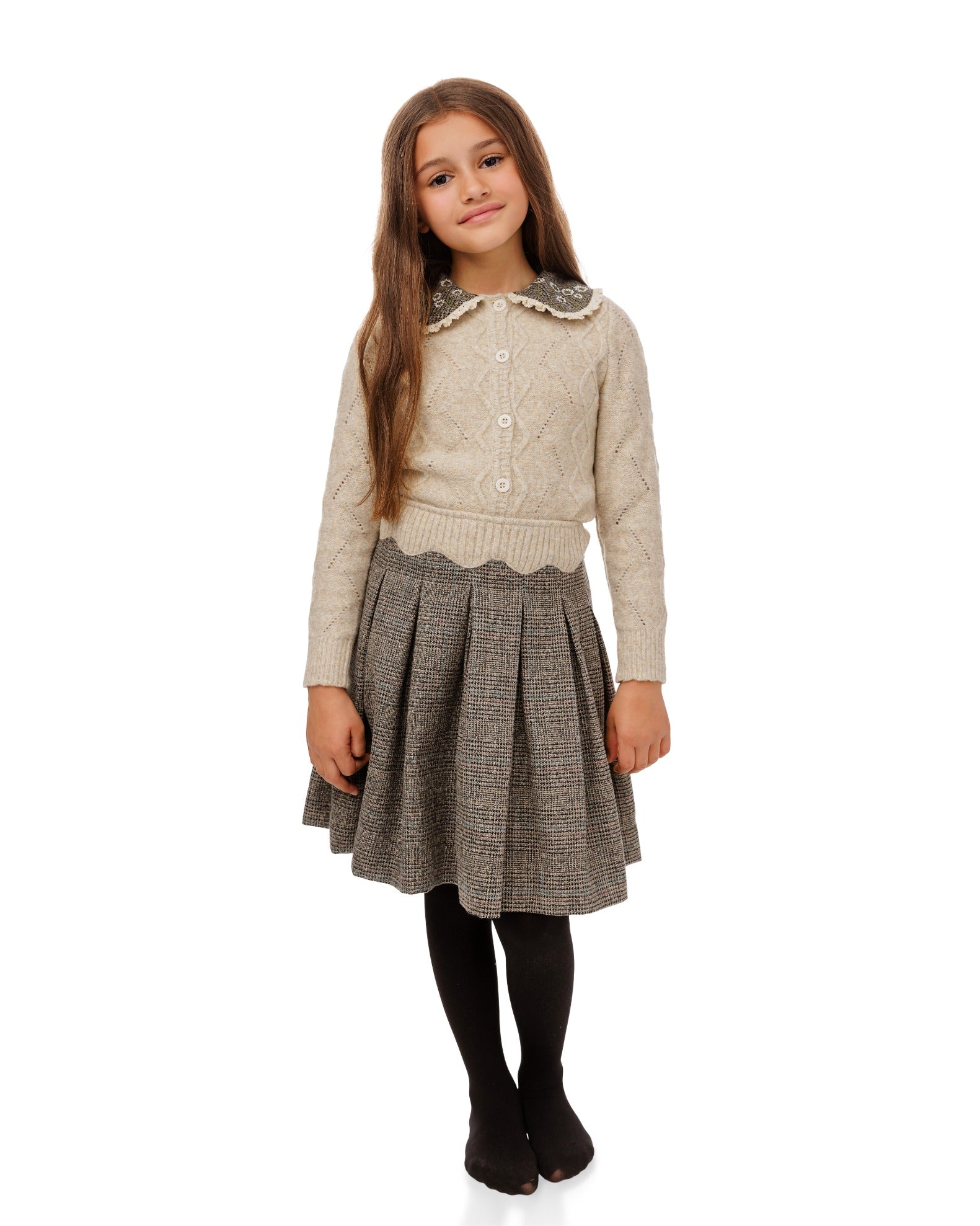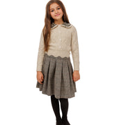 Beige Neutral Colored Plaid Scalloped Skirt