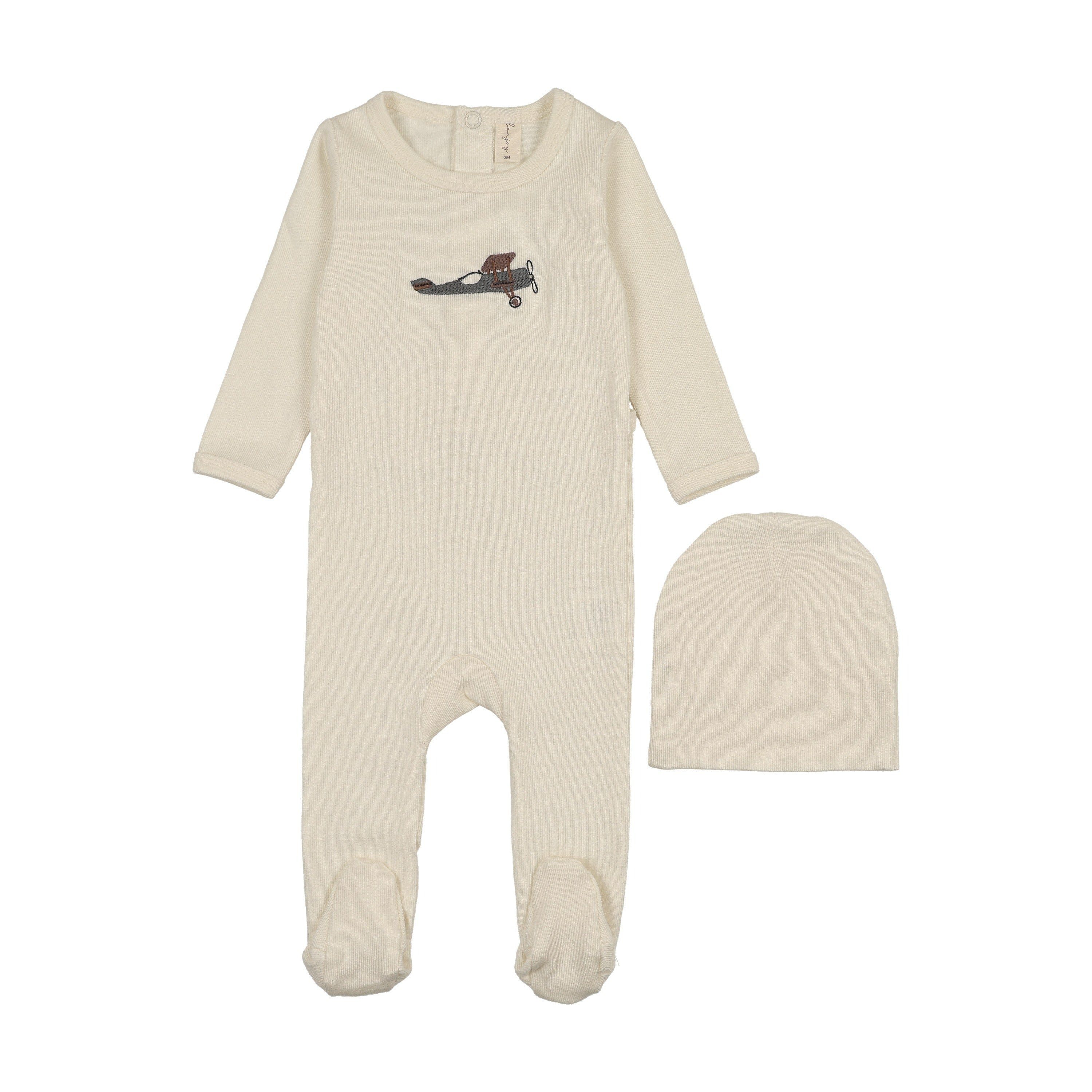 Embroidered Graphic Airplane Footie Set